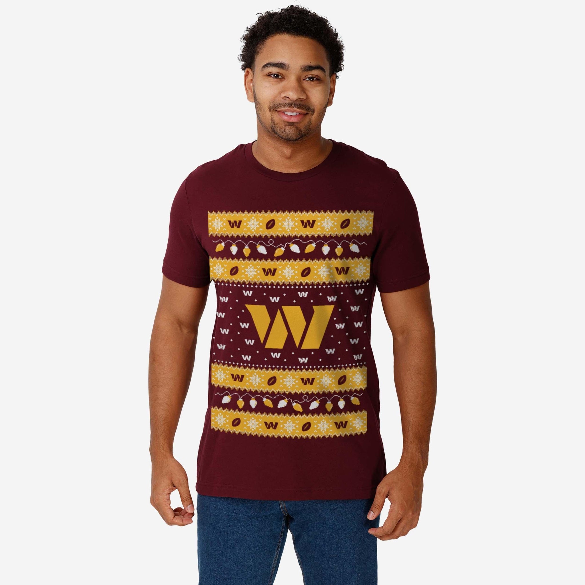 Washington Commanders Holiday Lights Sweater T-Shirt FOCO S - FOCO.com