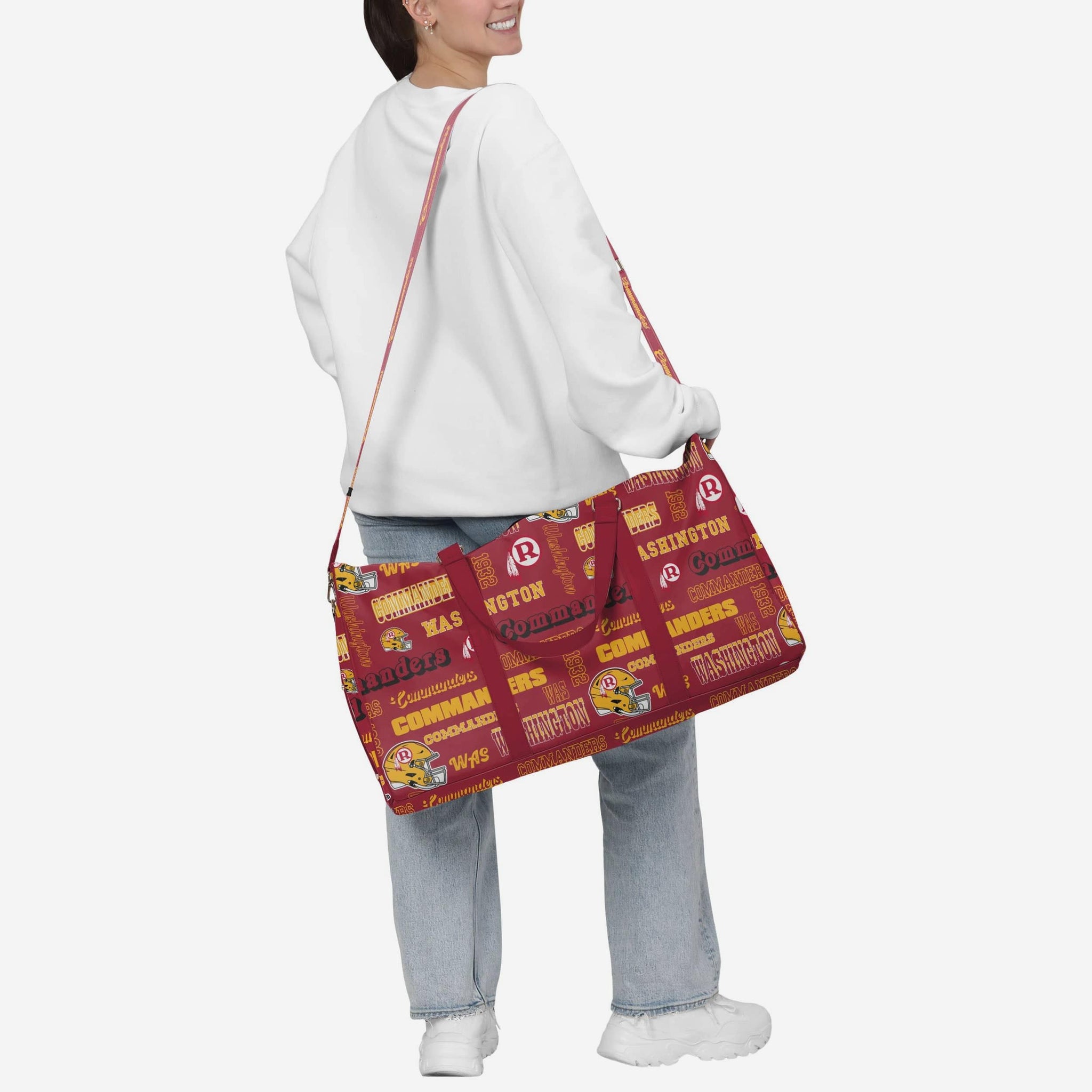 • Repeat retro Washington Commanders wordmarks, logos, and graphics printed all over the bag so your team pride is always on display