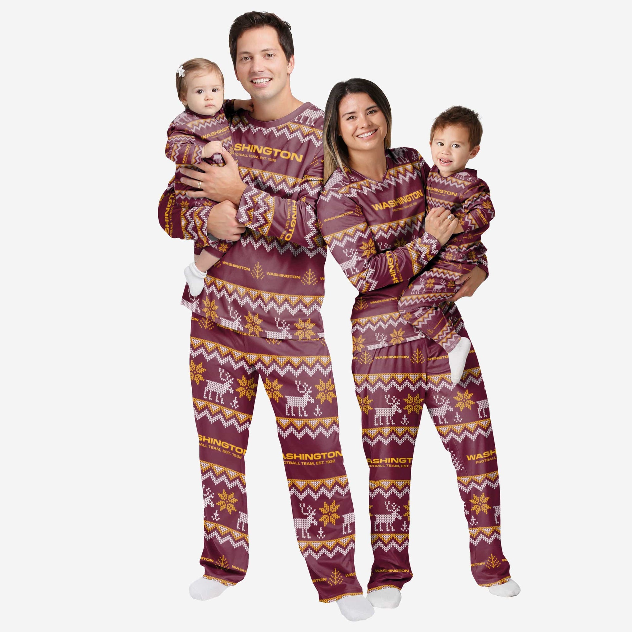 Get some matching family pajamas and dress to impress this holiday season! You won't want to miss these kids' team pajamas! These youth PJ's are comfortable and show off your team spirit in the form of some sweet youth jammies. Introducing the Washington Commanders Toddler Ugly Pattern Family Holiday Pajamas! Don't forget to take your holiday photo with the whole family wearing matching Christmas pajamas!