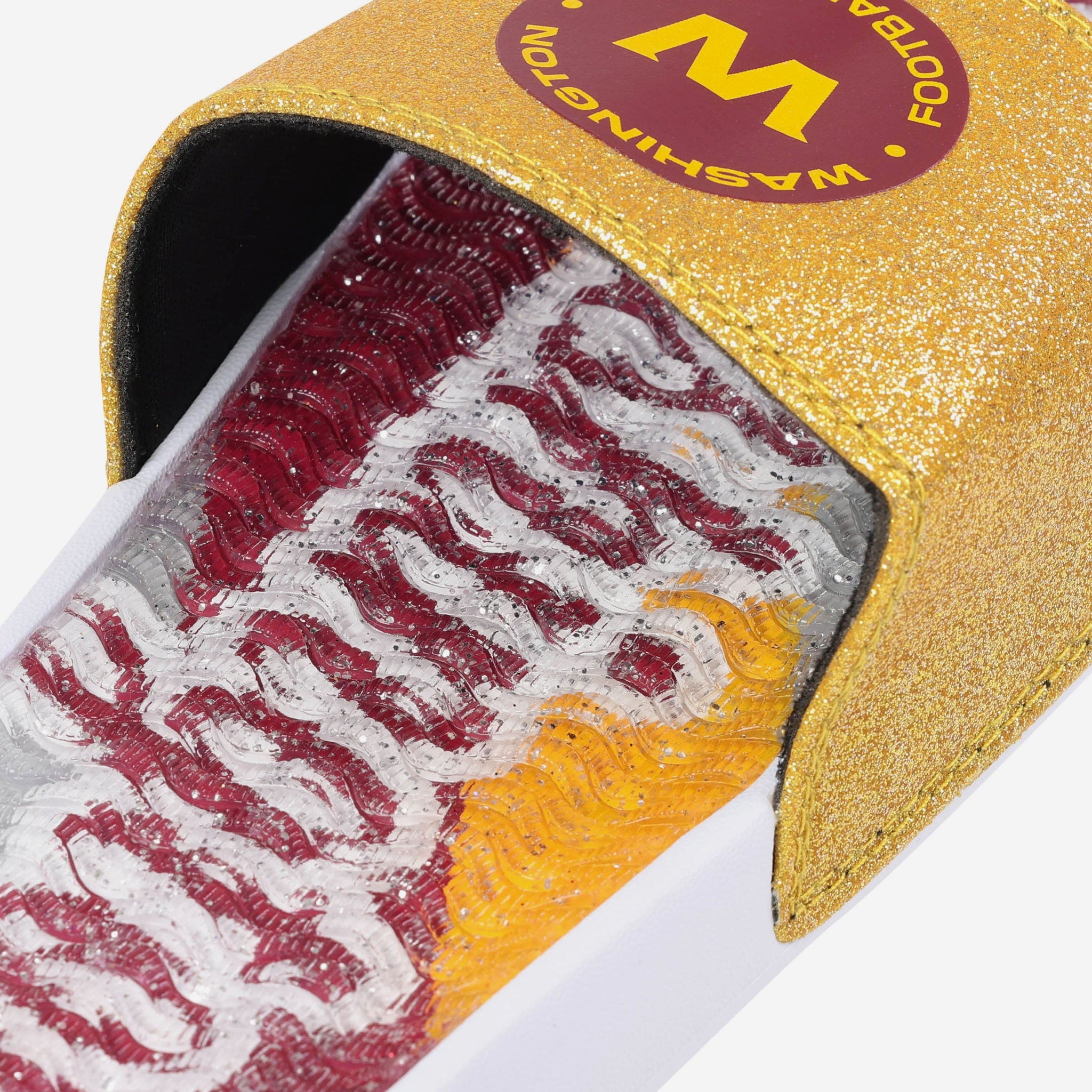 Fan footwear that will make you the pick of the glitter. Let your team spirit shine with every step in these Washington Commanders Women's Glitter Gel Slides!