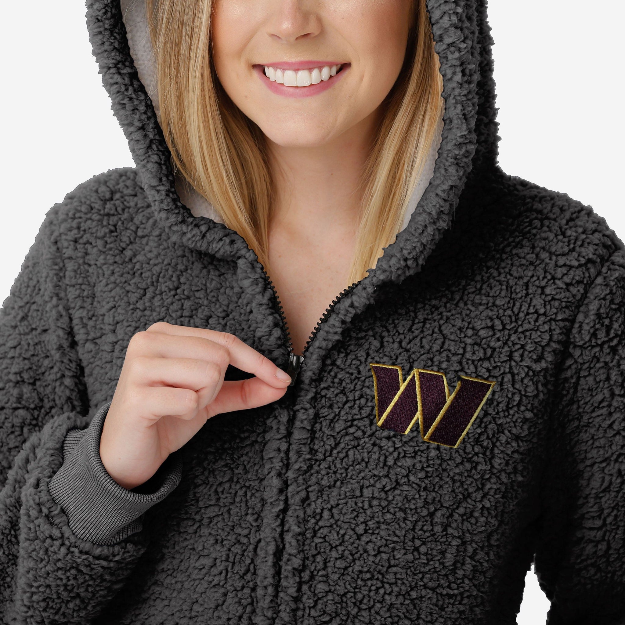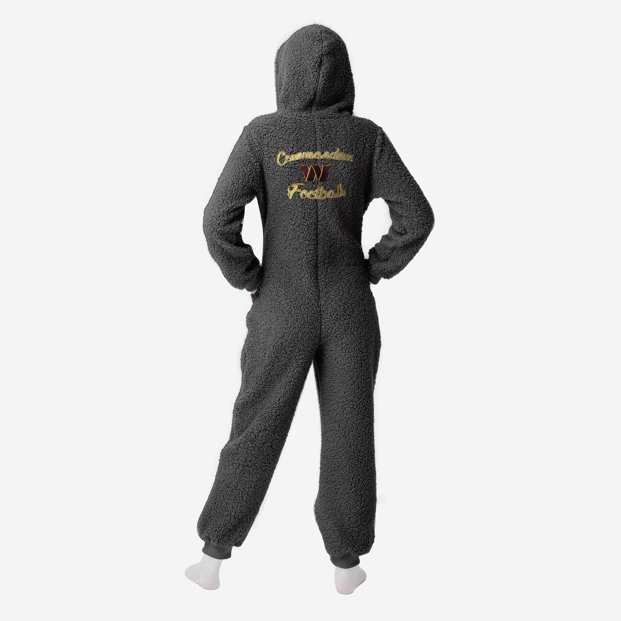 Get some matching family pajamas and dress to impress this holiday season! You won't want to miss these onesie team pajamas! These women's PJ's are comfortable and show off your team spirit in the form of some sweet one piece jammies. Introducing the Washington Commanders Women's Sherpa One Piece Pajamas! Don't forget to take your holiday photo with the whole family wearing matching Christmas pajamas!