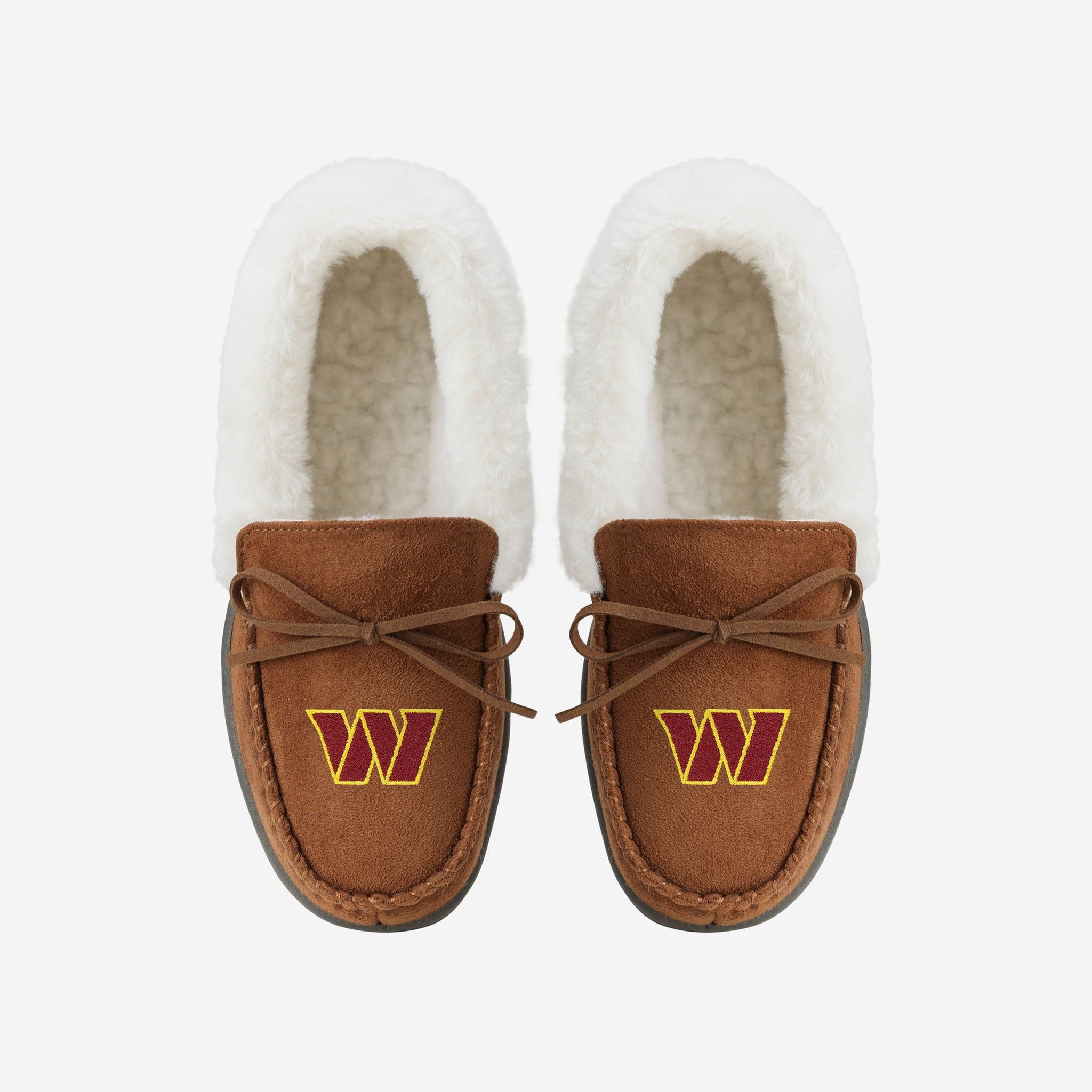 When you rocc these moccs, you can be an MVP on the couch watching TV! Introducing the Washington Commanders Women's Tan Moccasin Slippers!