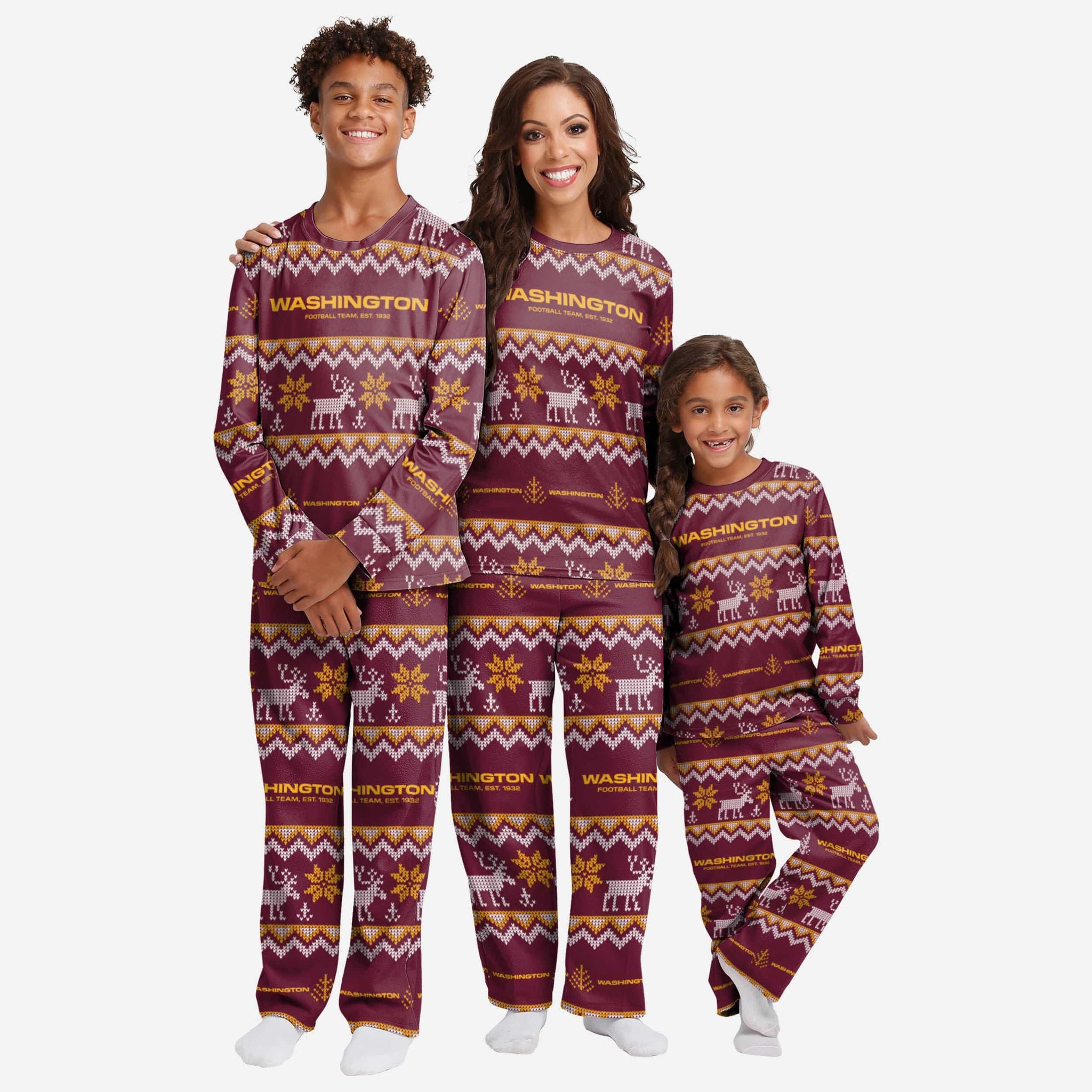 Washington Commanders Youth Ugly Pattern Family Holiday Pajamas FOCO - FOCO.com
