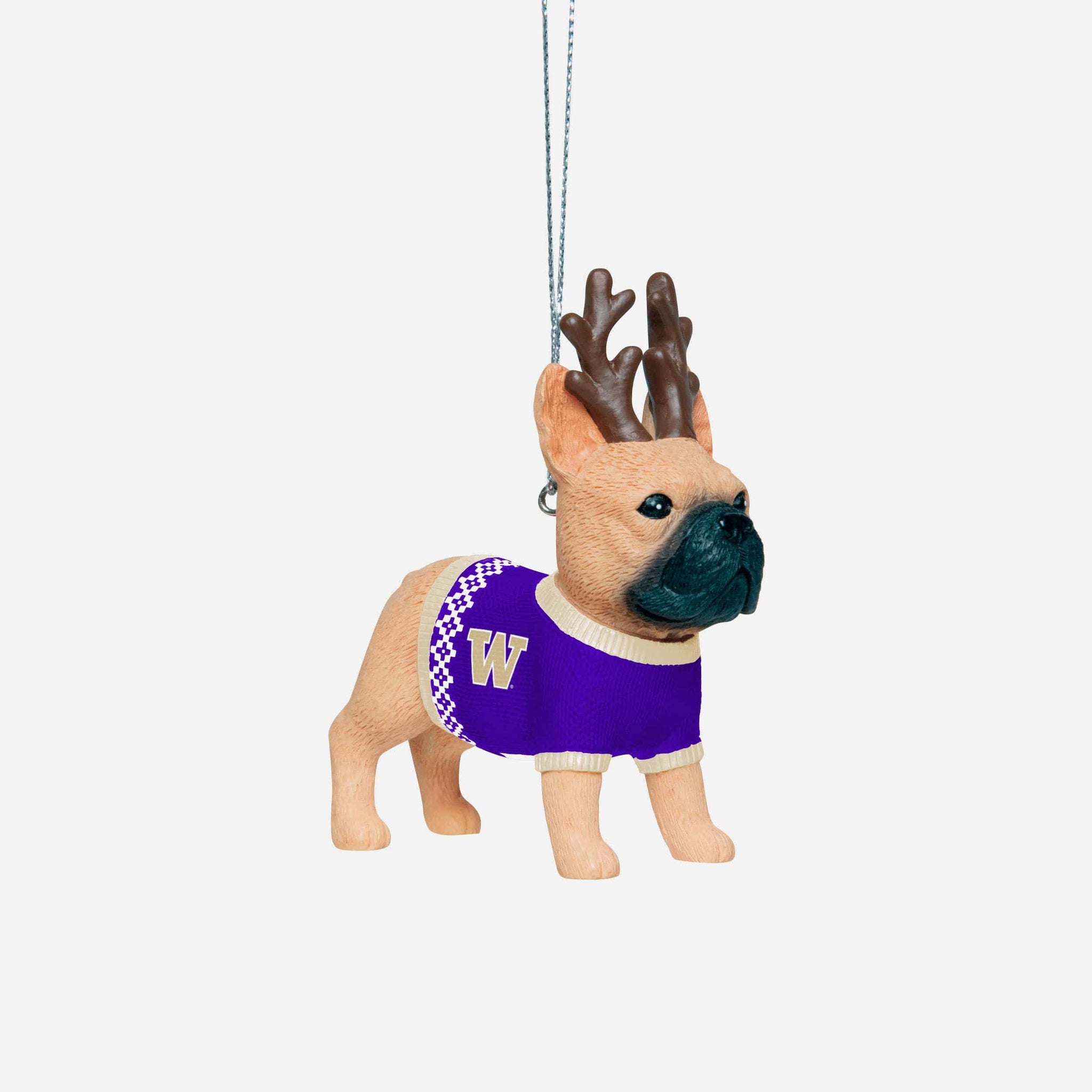 Washington Huskies French Bulldog Wearing Sweater Ornament FOCO - FOCO.com