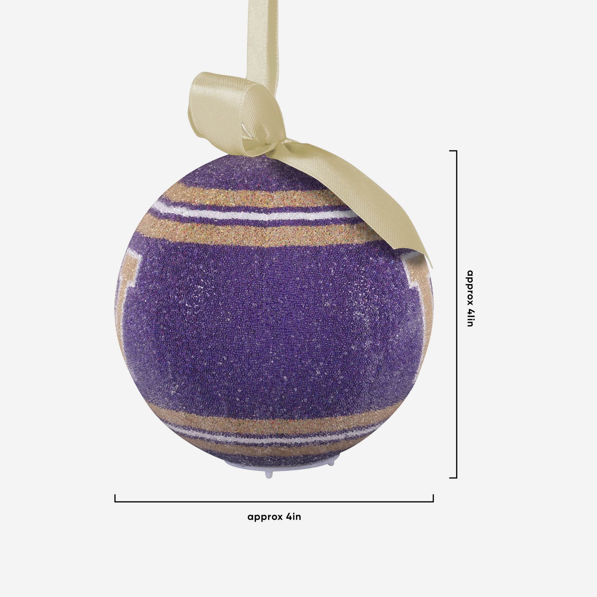 • Team-colored stripe accents on top and bottom of ornament to make your tree look extra awesome