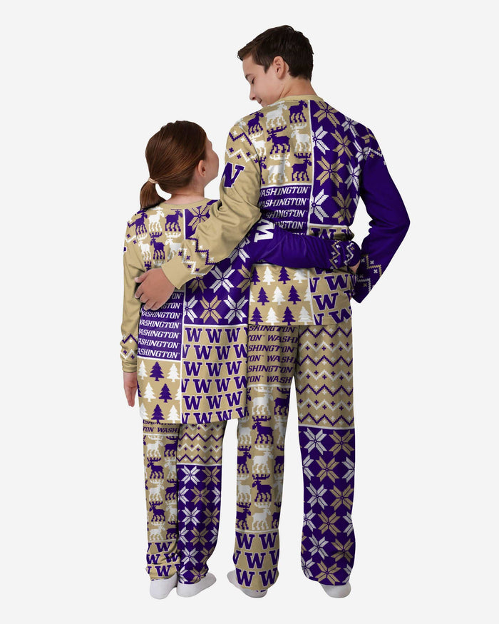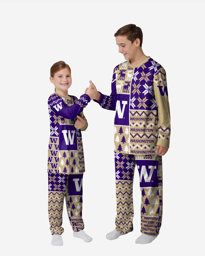 Get some matching family pajamas and dress to impress this holiday season! You won't want to miss these kids' team pajamas! These youth PJ's are comfortable and show off your team spirit in the form of some sweet youth jammies. Introducing the Washington Huskies Youth Busy Block Family Holiday Pajamas! Don't forget to take your holiday photo with the whole family wearing matching Christmas pajamas!