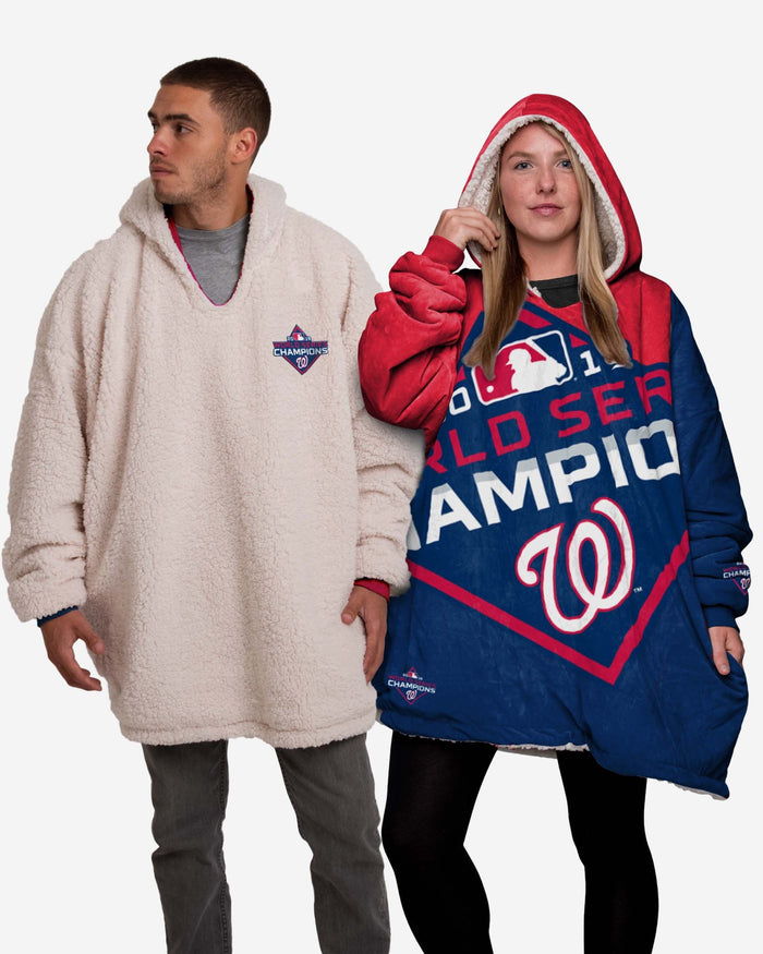 Being a fan can be a tough job, especially when you factor in the stress and nerves that come with cheering your team on in the postseason. But it paid off for you, because now it's time to celebrate a championship. So sit back, relax, and let everyone bask in your championship glory with this Washington Nationals 2019 World Series Champions Reversible Hoodeez.