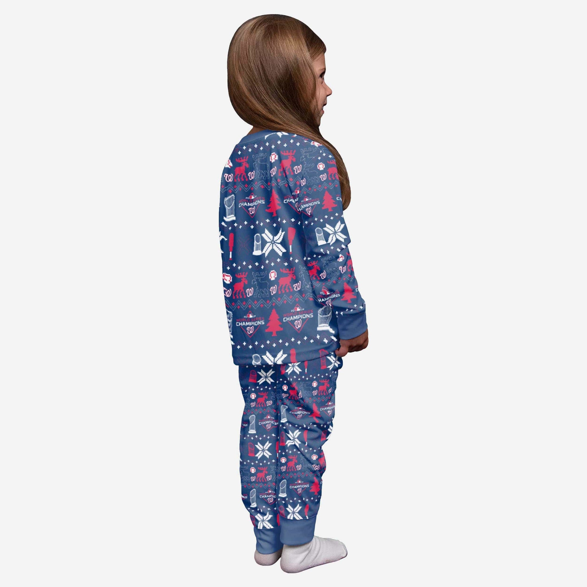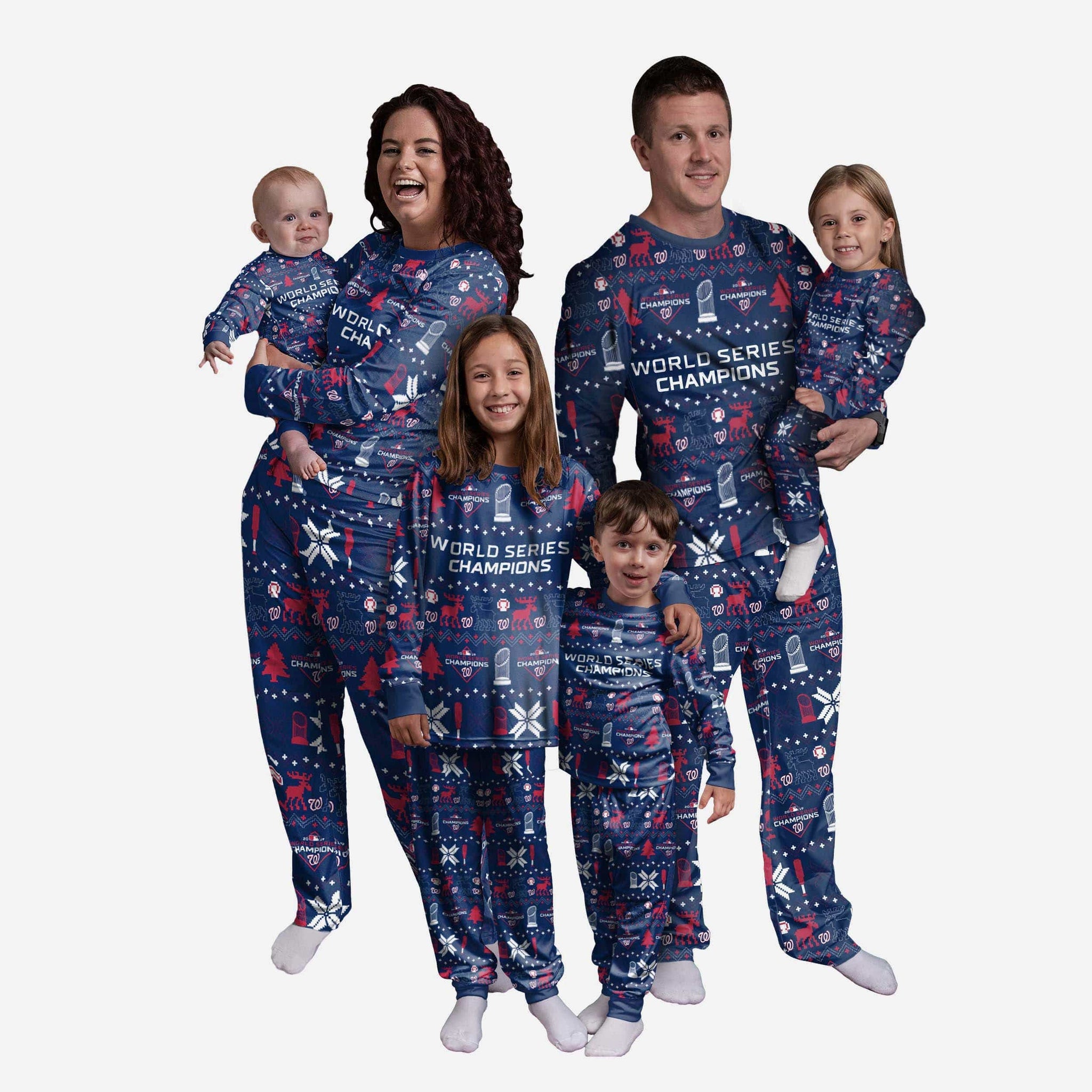 Get some matching family pajamas to turn your good night's sleep into a champion night's sleep. You won't want to miss these kids' team pajamas. These youth PJ's are comfortable and show off your champ spirit in the form of some sweet youth jammies. Introducing Washington Nationals 2019 World Series Champions Toddler Family Holiday Pajamas. Don't forget to take your holiday photo with the family wearing matching Christmas pajamas.