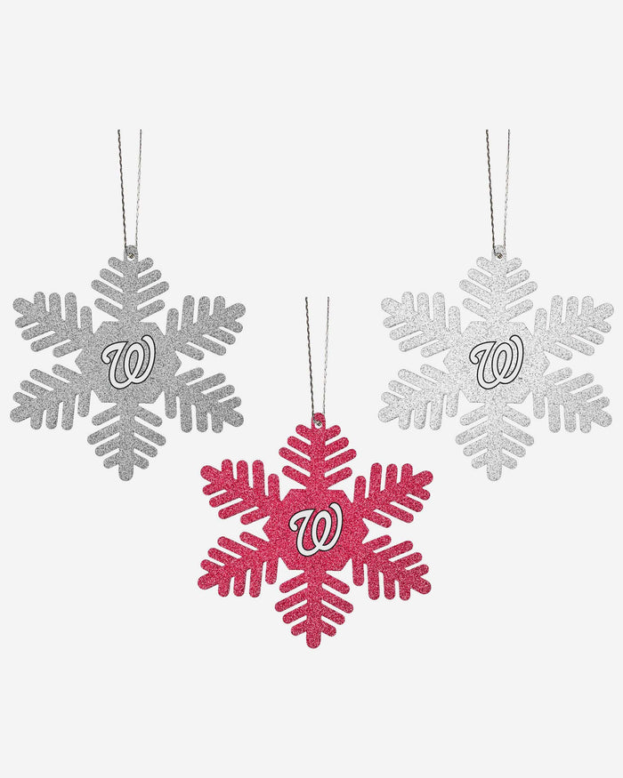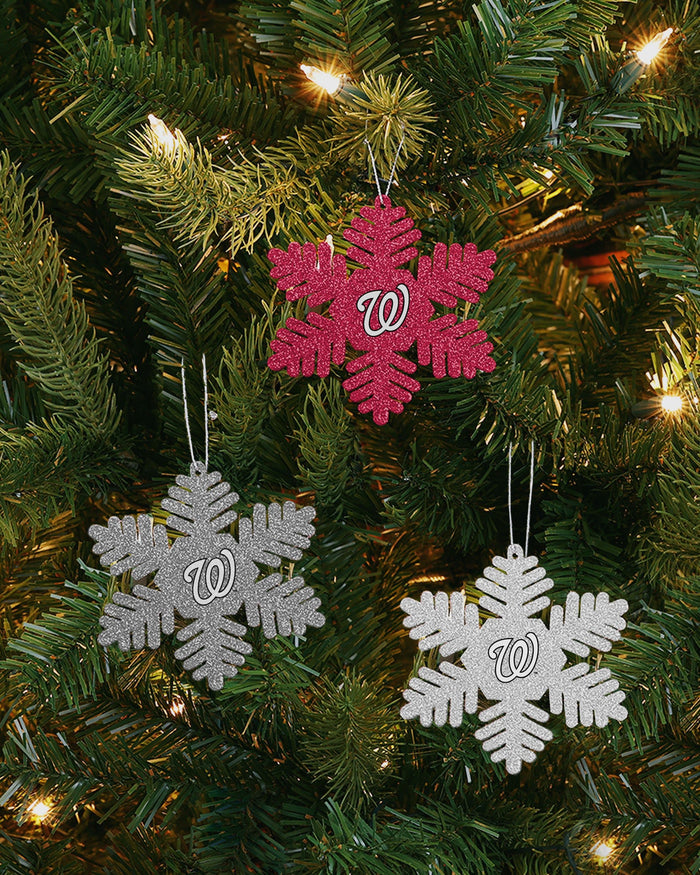 One half "Let it Snow", one half "Go Team Go!" This holiday season, let your team spirit AND holiday spirit shine by proudly displaying this Washington Nationals 3 Pack Metal Glitter Snowflake Ornament!