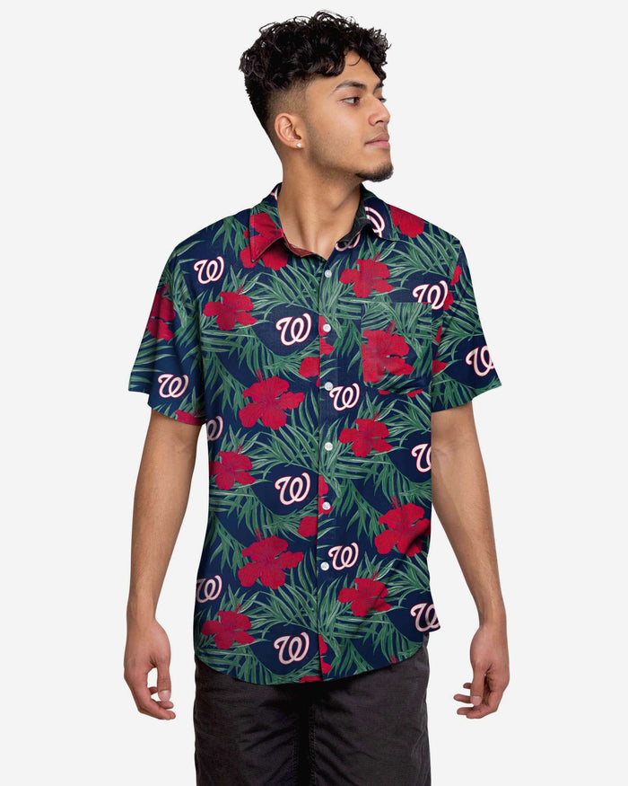 Whether you're sipping a cold, delicious beverage on the beach, or just lounging on the couch watching the game on TV, this Washington Nationals Hibiscus Button Up Shirt is the perfect way to show off your fan fashion sense at literally any occasion.