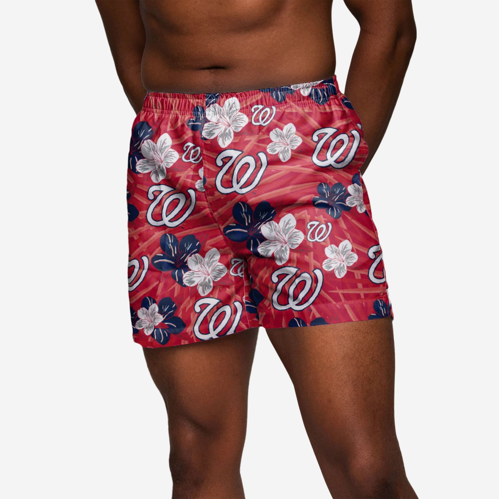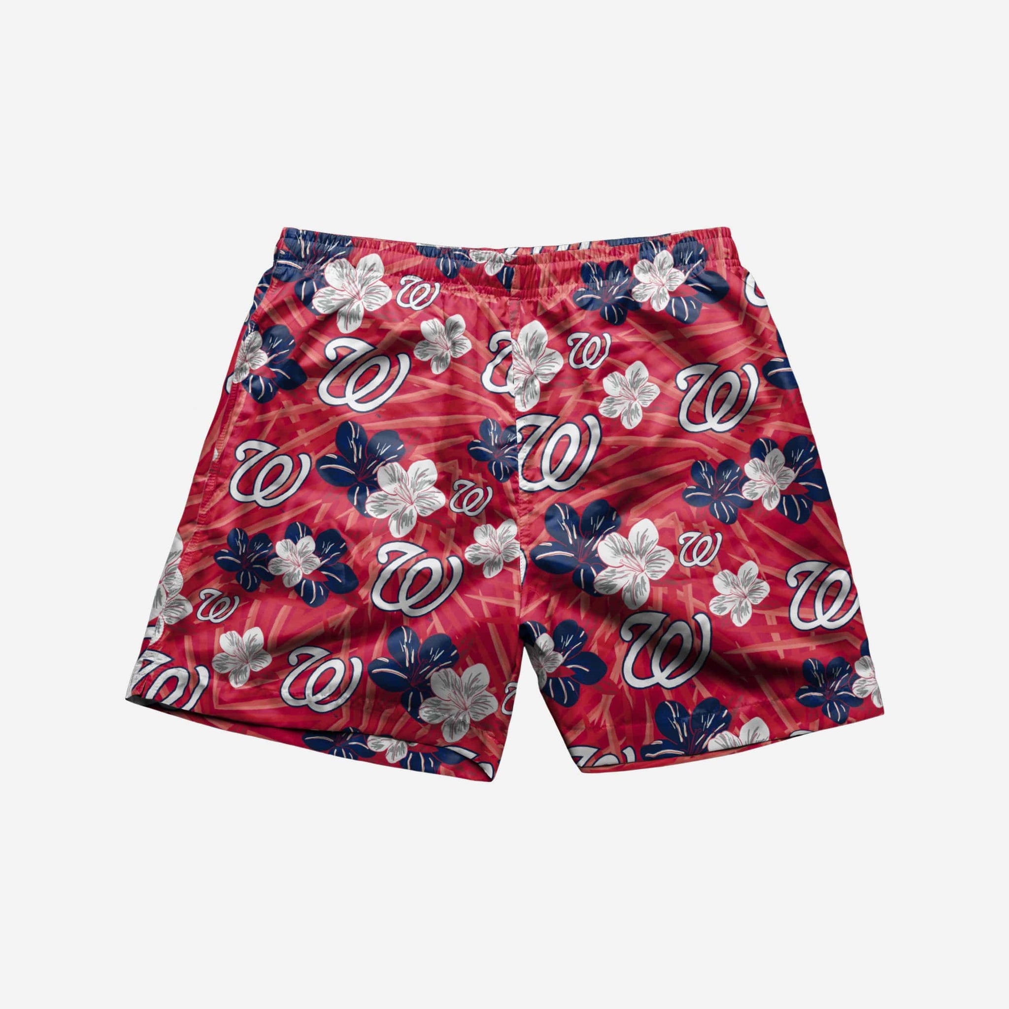 Rock your fandom and say "aloha" to the pool, ocean, lake, hot tub, or whatever body of water you're getting into while you wear these Washington Nationals Hibiscus Swimming Trunks.