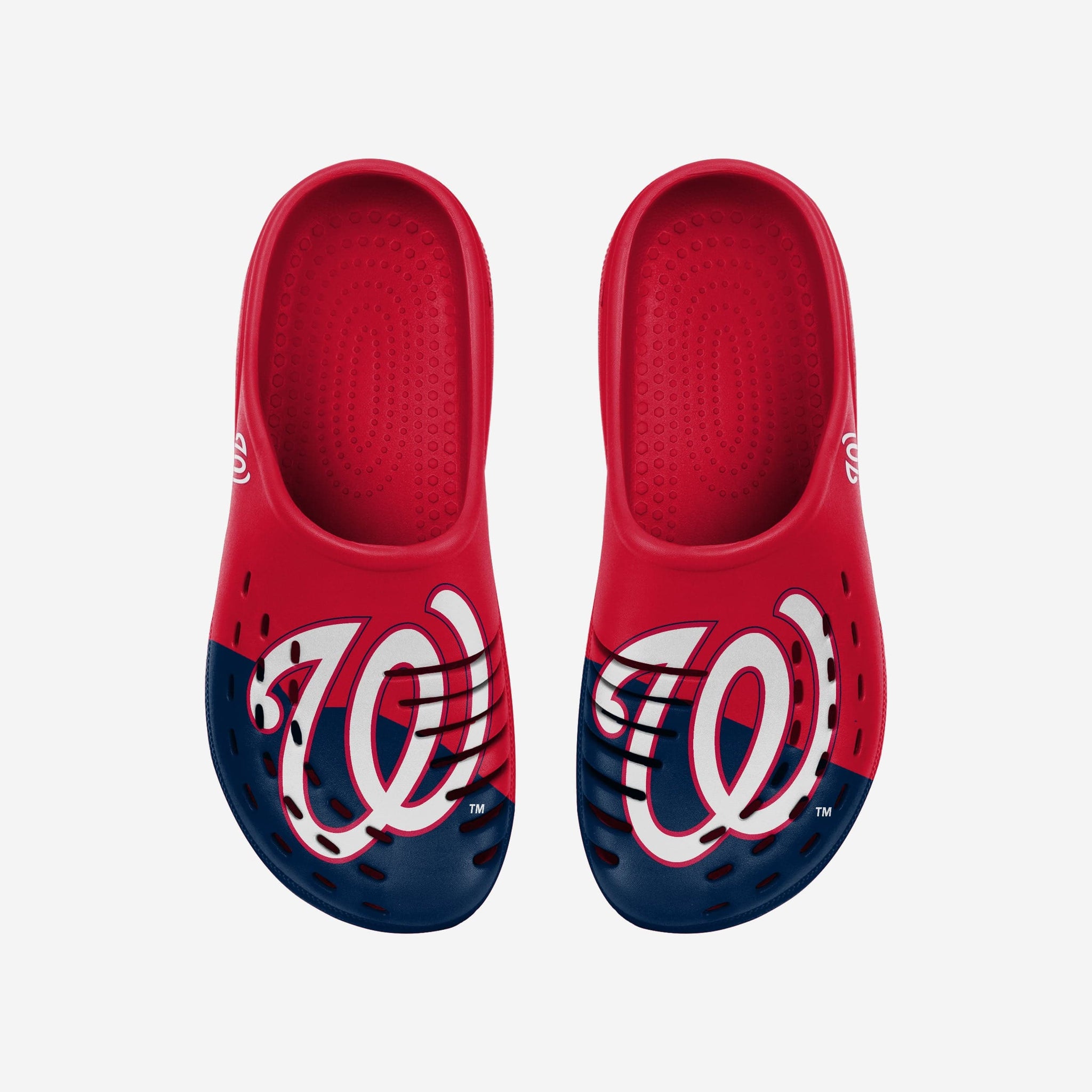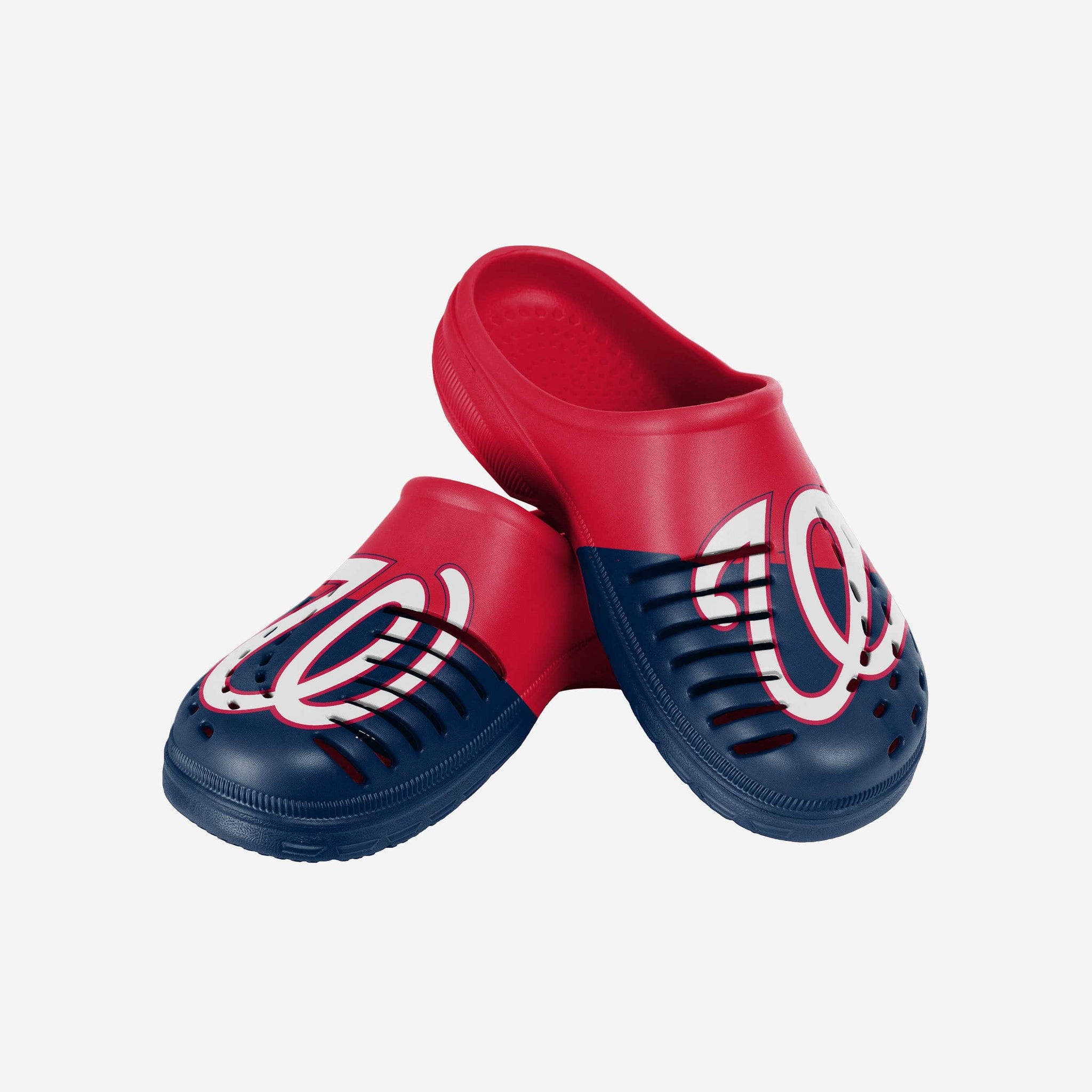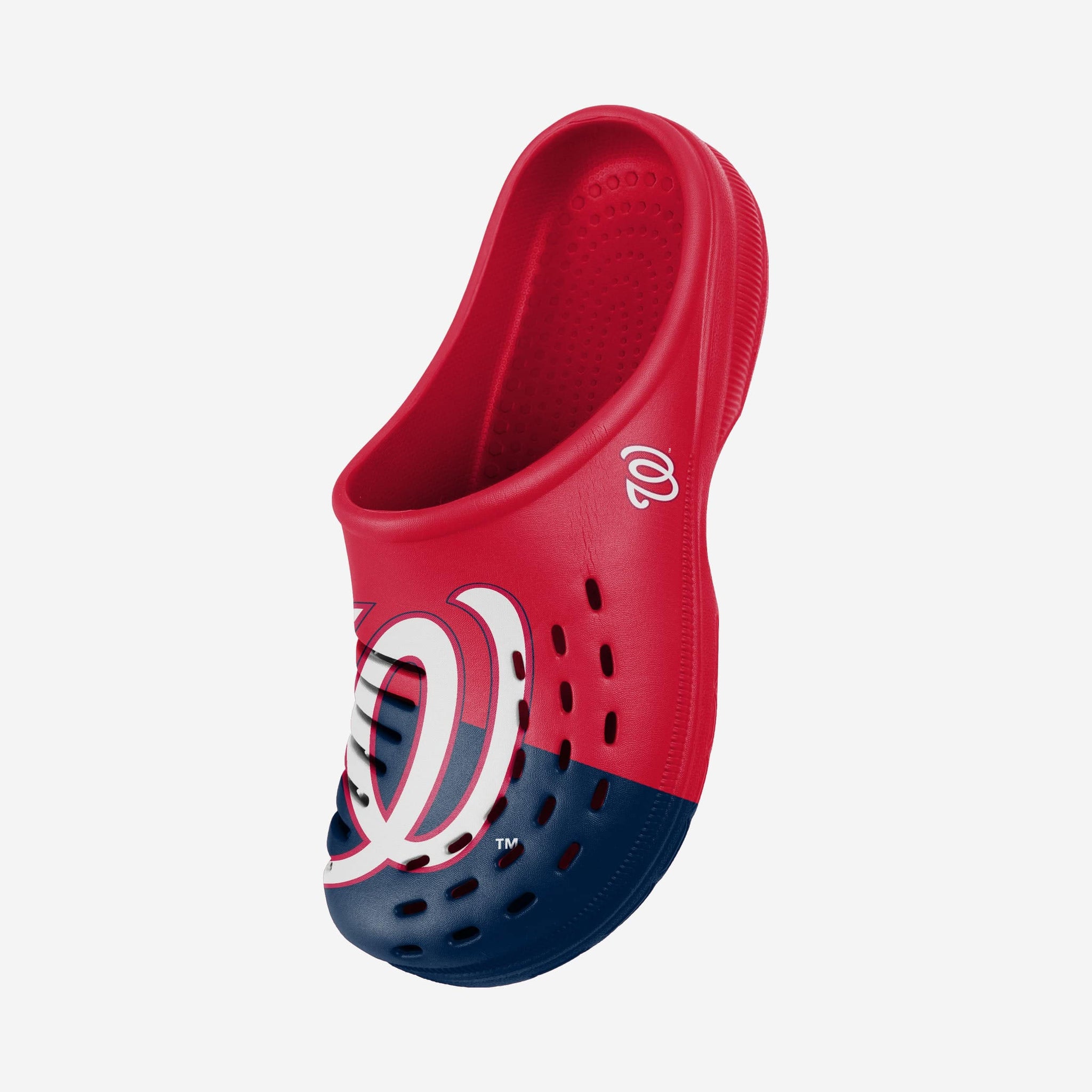 Whether you're walking around the house, in the park, or to your favorite seat in the stadium ready to cheer your team on to victory, do so in style by rocking these Washington Nationals Colorblock Big Logo Clogs!