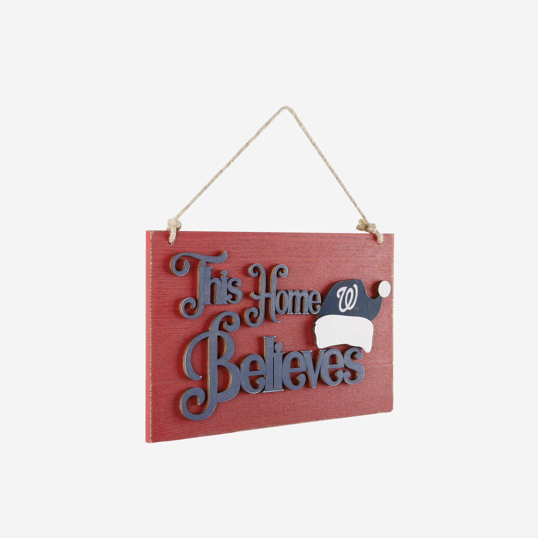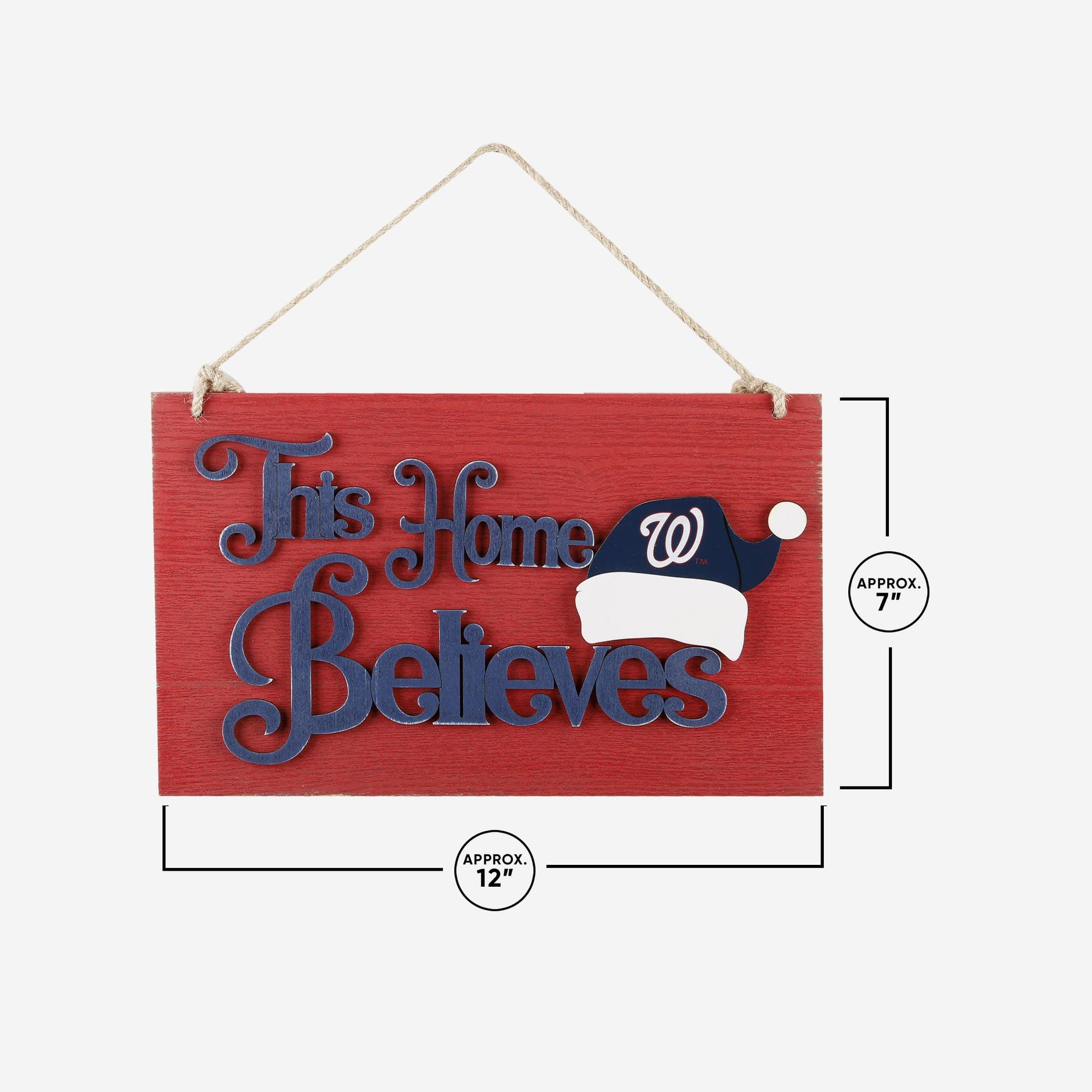Your fancave is going to feel more like The North Pole with this Washington Nationals This Home Believes Wall Sign on display! Proudly show it off so Fan-ta Claus brings you something nice this year!
