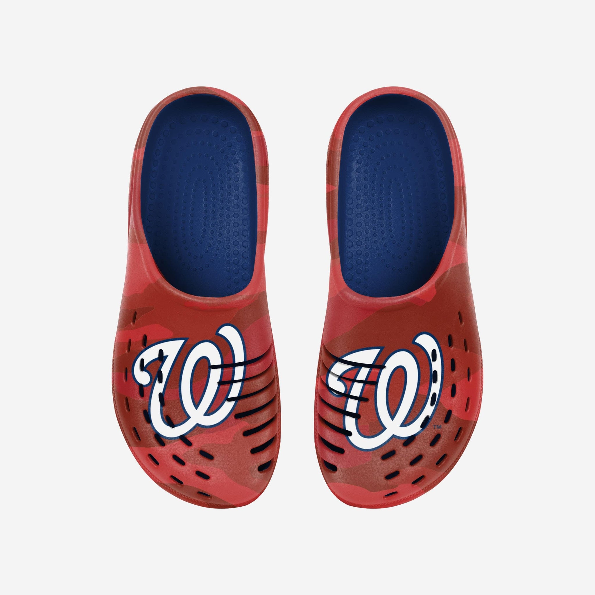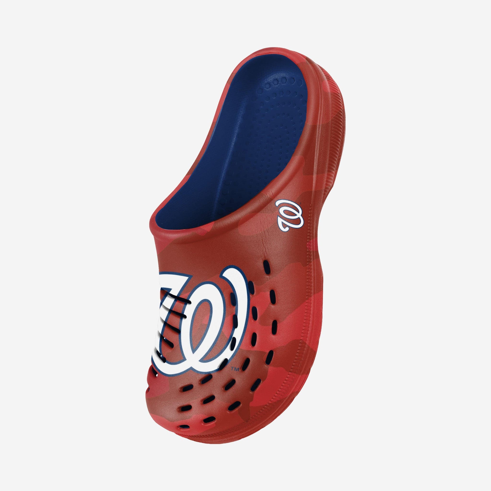 Chanting GO TEAM GO just looks better when you're rocking some camo. Prove your fandom is a STEP above by proudly rocking these Washington Nationals Tonal Camo Clogs.