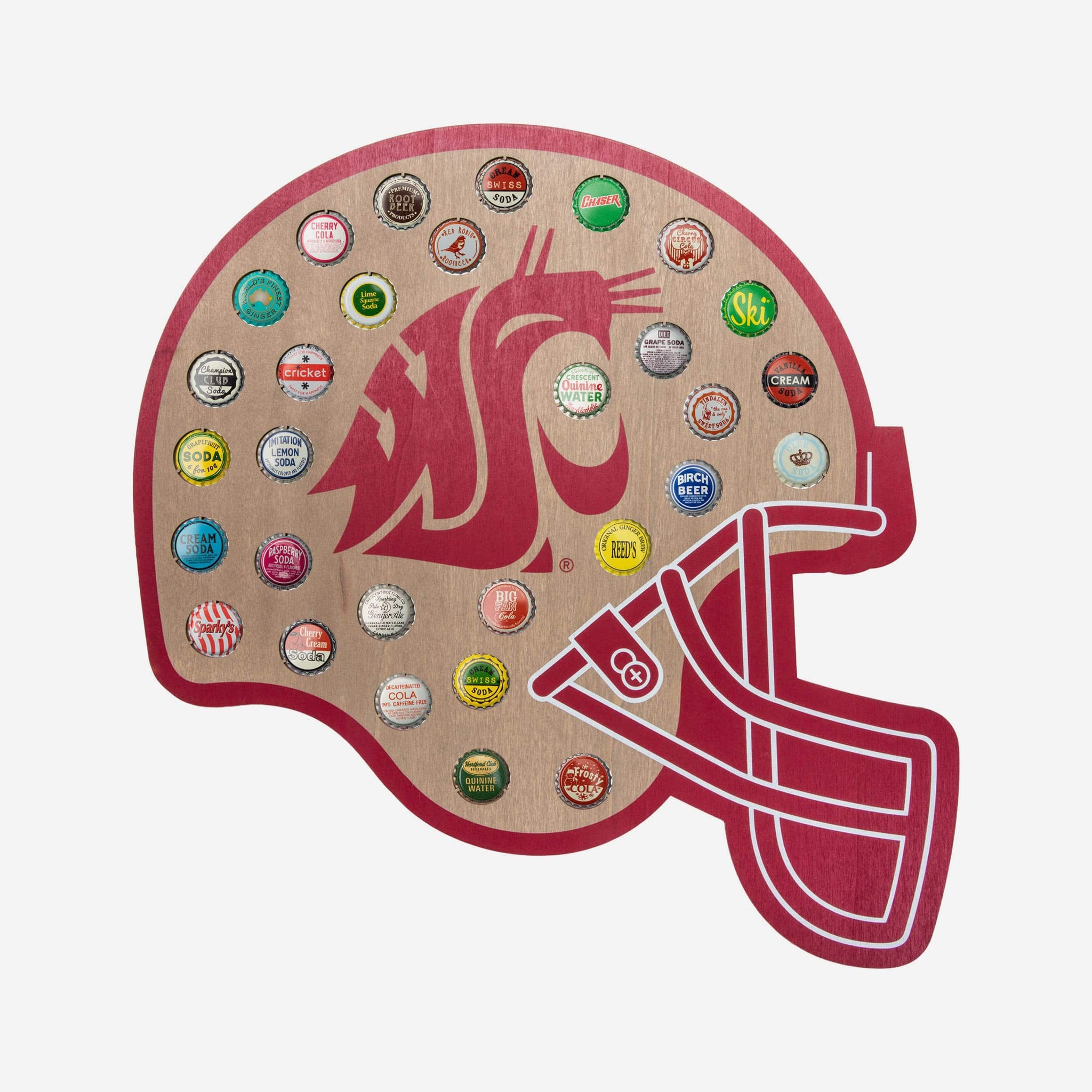 Cap off your fancave decorating and keep track of every cold one you crack while watching the game with this Washington State Cougars Push Bottle Cap Wall Sign.
