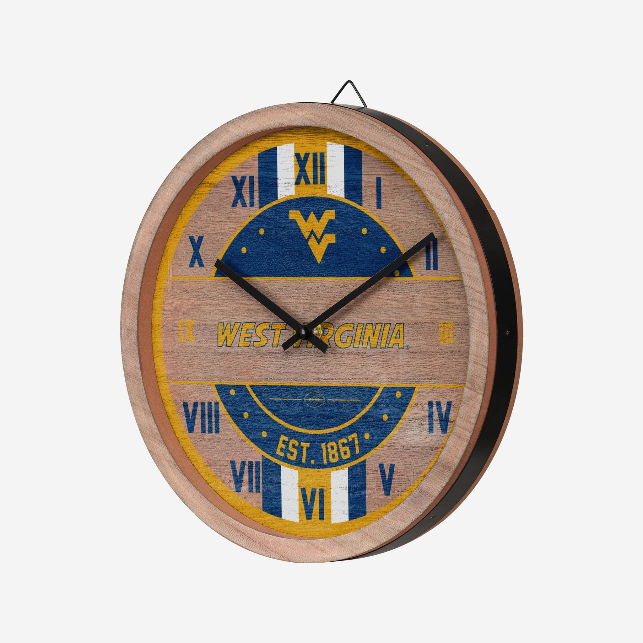 Tick. Tock. Don't let the clock hit zero on your chance to spice up your fancave. This West Virginia Mountaineers Barrel Wall Clock lets you show off your top-notch team spirit, and also tells you what time it is. But let's be honest. We all know it's always game time.