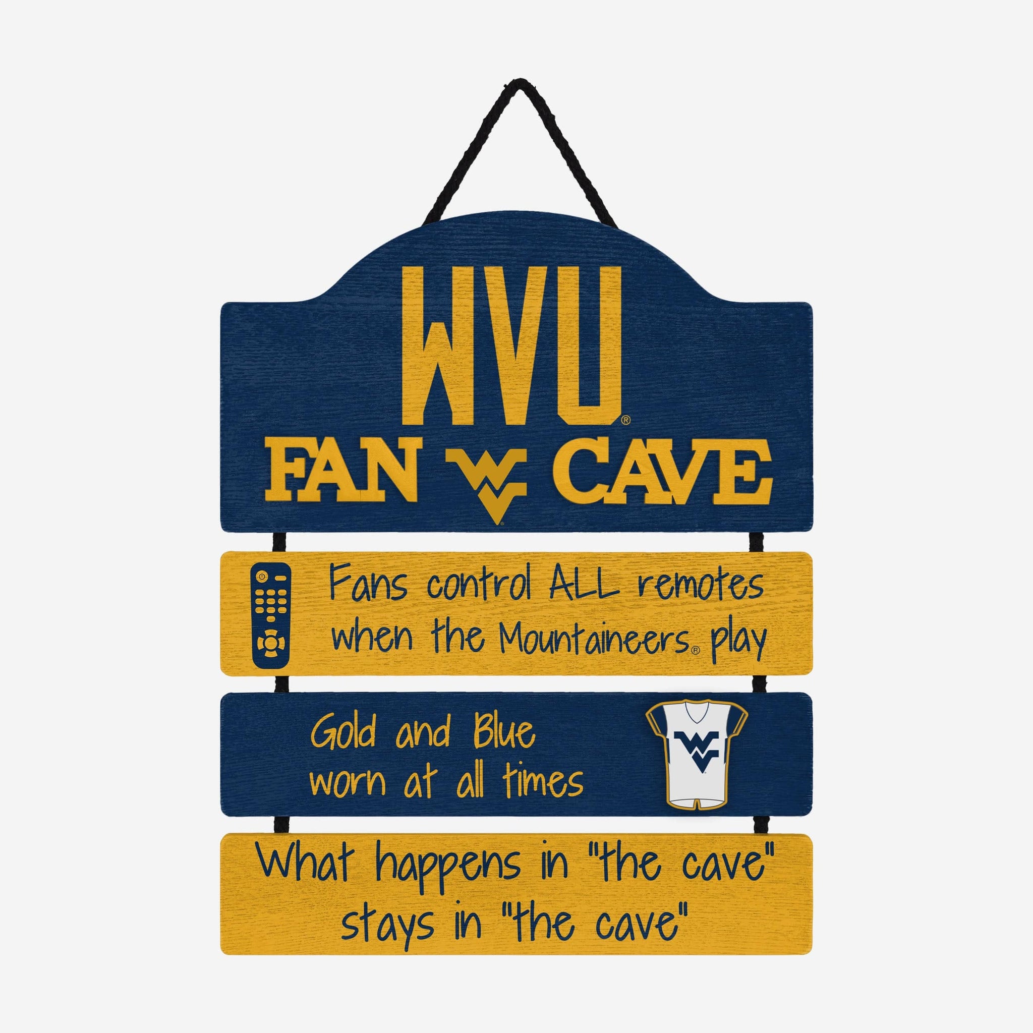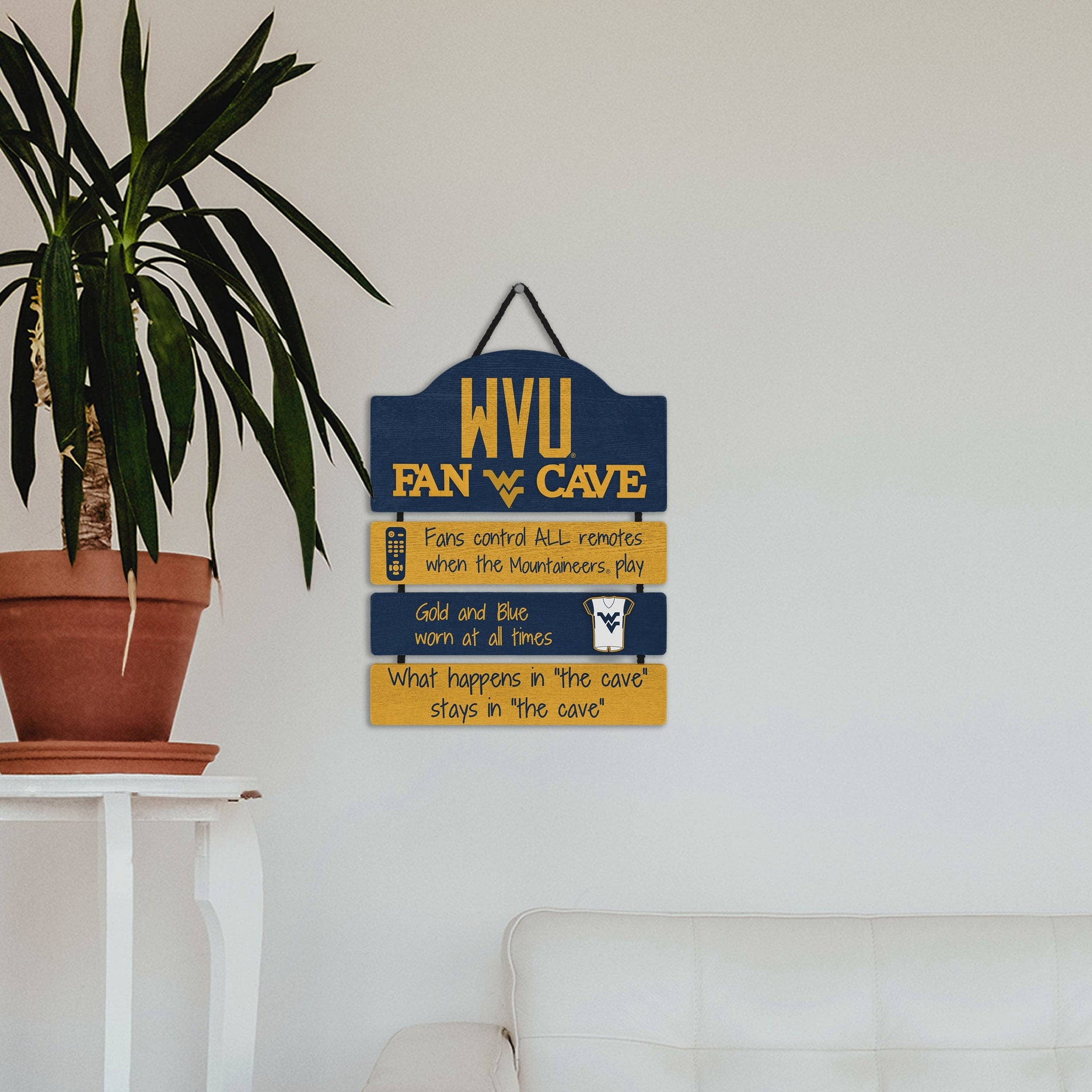 So, you're hosting the big watch party, and want to make sure you've decorated enough to impress your fellow fans. We've got you covered. This West Virginia Mountaineers Mancave Sign lets everyone know who the fan in charge is, and gives your home field plenty of advantage.