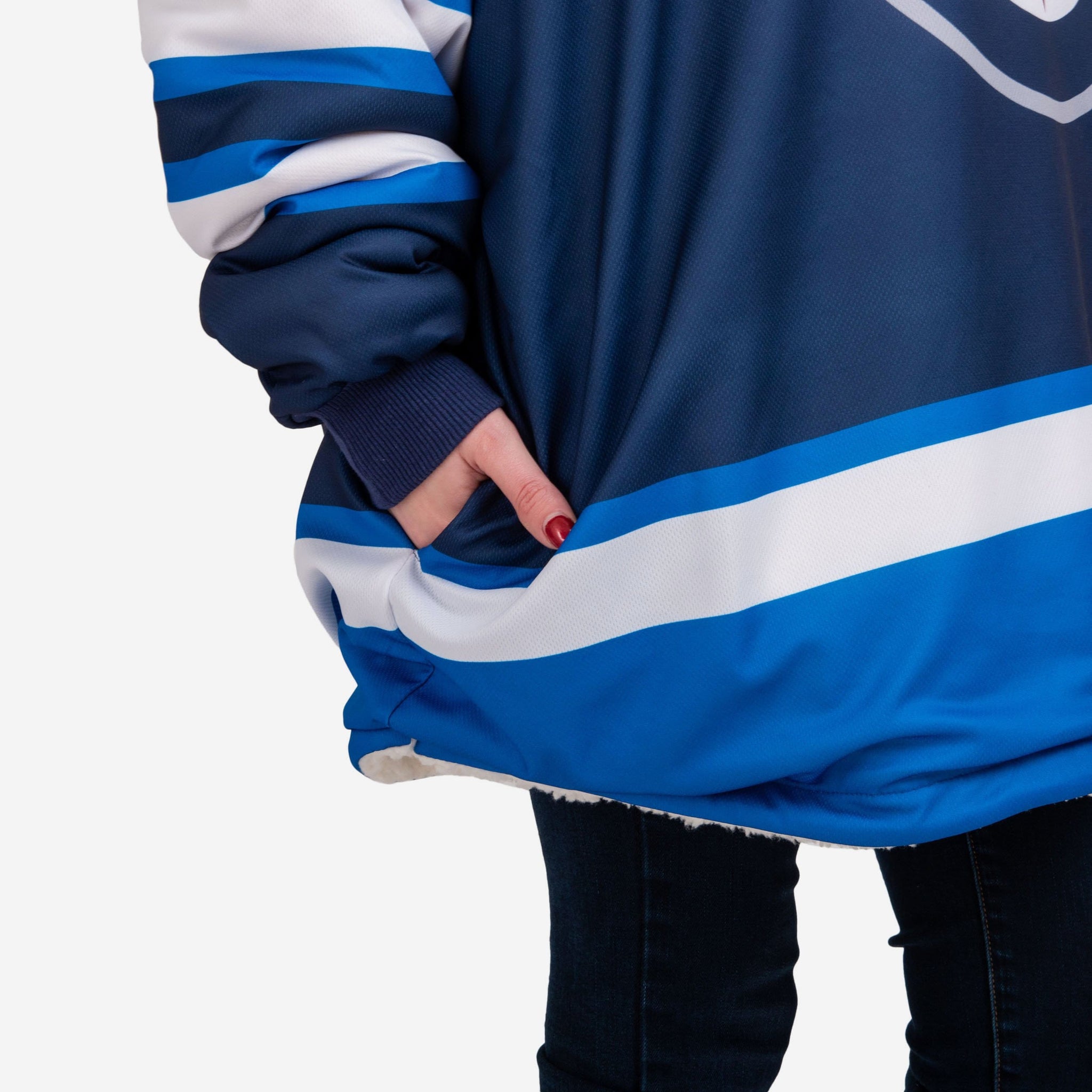 Dress like the star of the game without leaving your couch. Introducing the Winnipeg Jets Reversible Gameday Hoodeez.