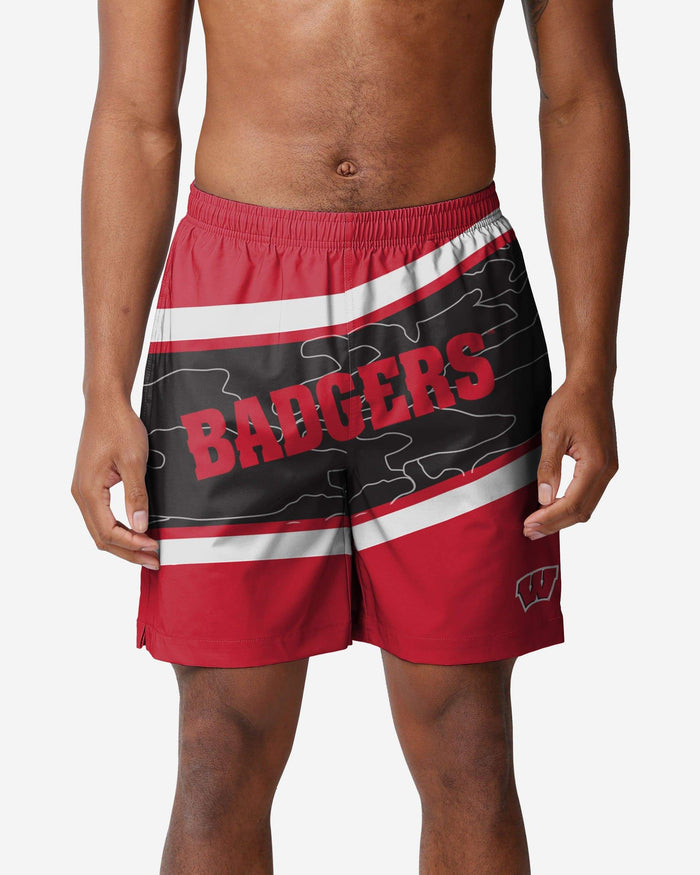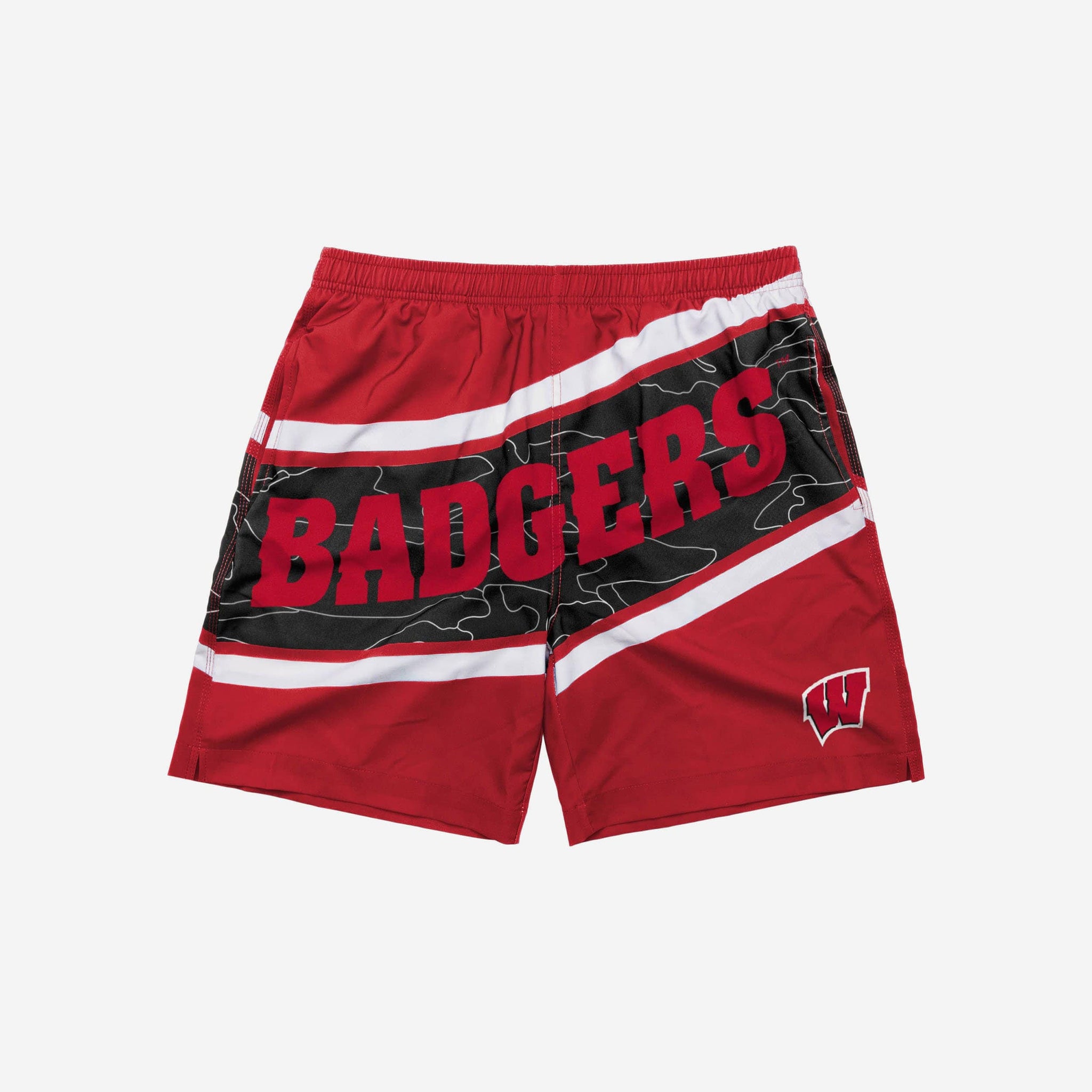 Wisconsin Badgers Big Wordmark Swimming Trunks FOCO S - FOCO.com