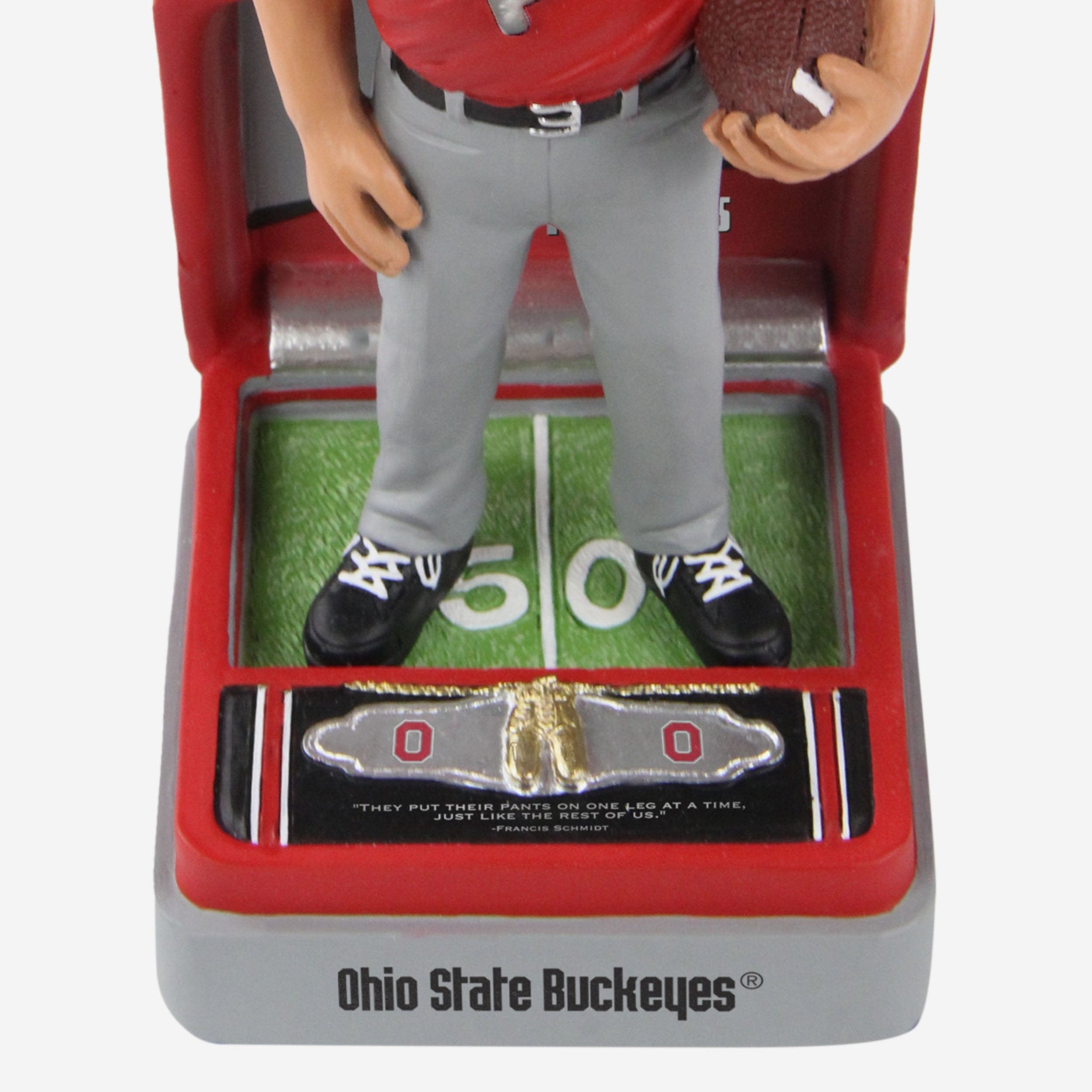 You put your pants on one leg at a time just like every fan. But your pants? They're golden. You can't tell the history of The Game without one of the greatest coaches in program history! Introducing the Woody Hayes Ohio State Buckeyes The Game Gold Pants Bobblehead.