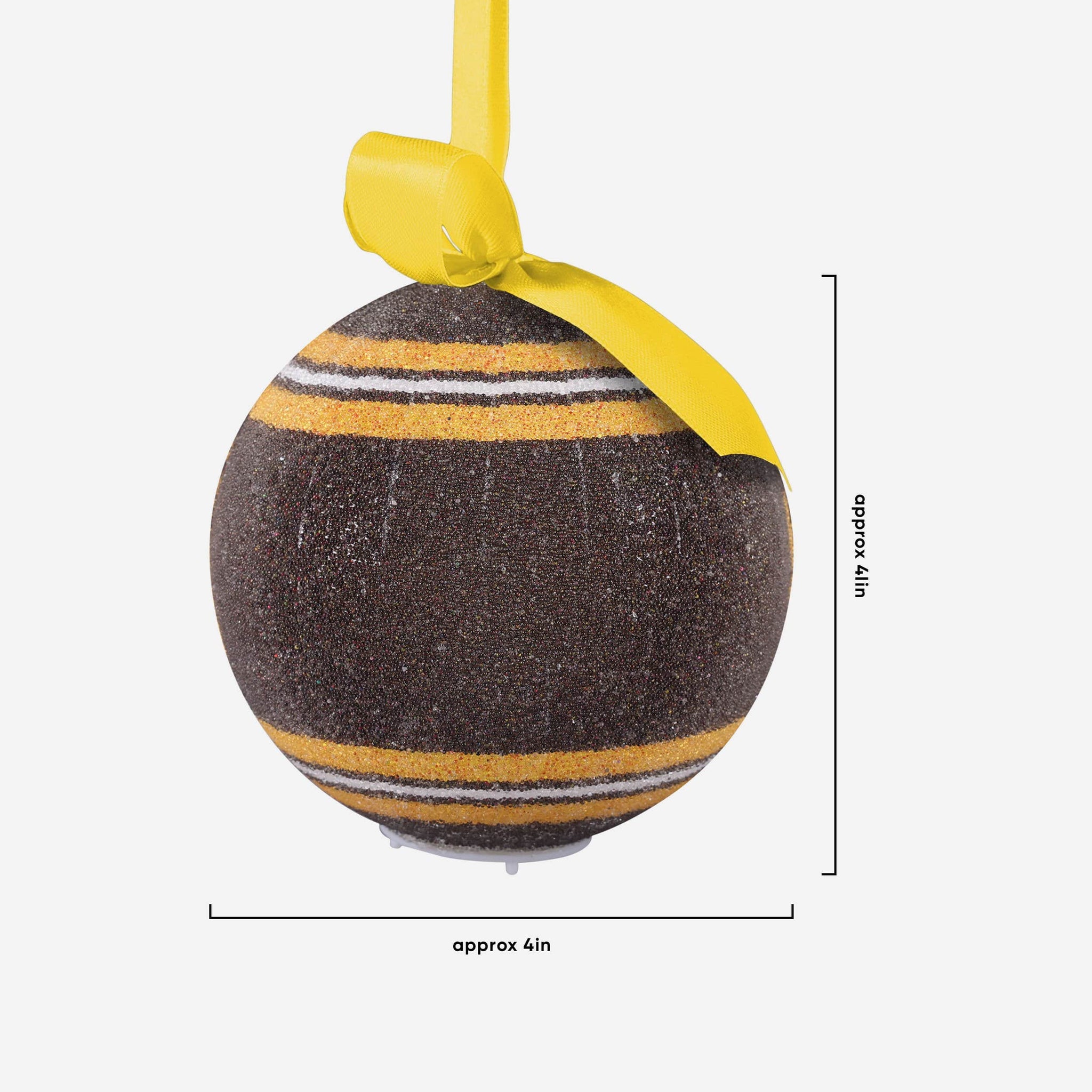 - Team-colored stripe accents on top and bottom of ornament to make your tree look extra awesome