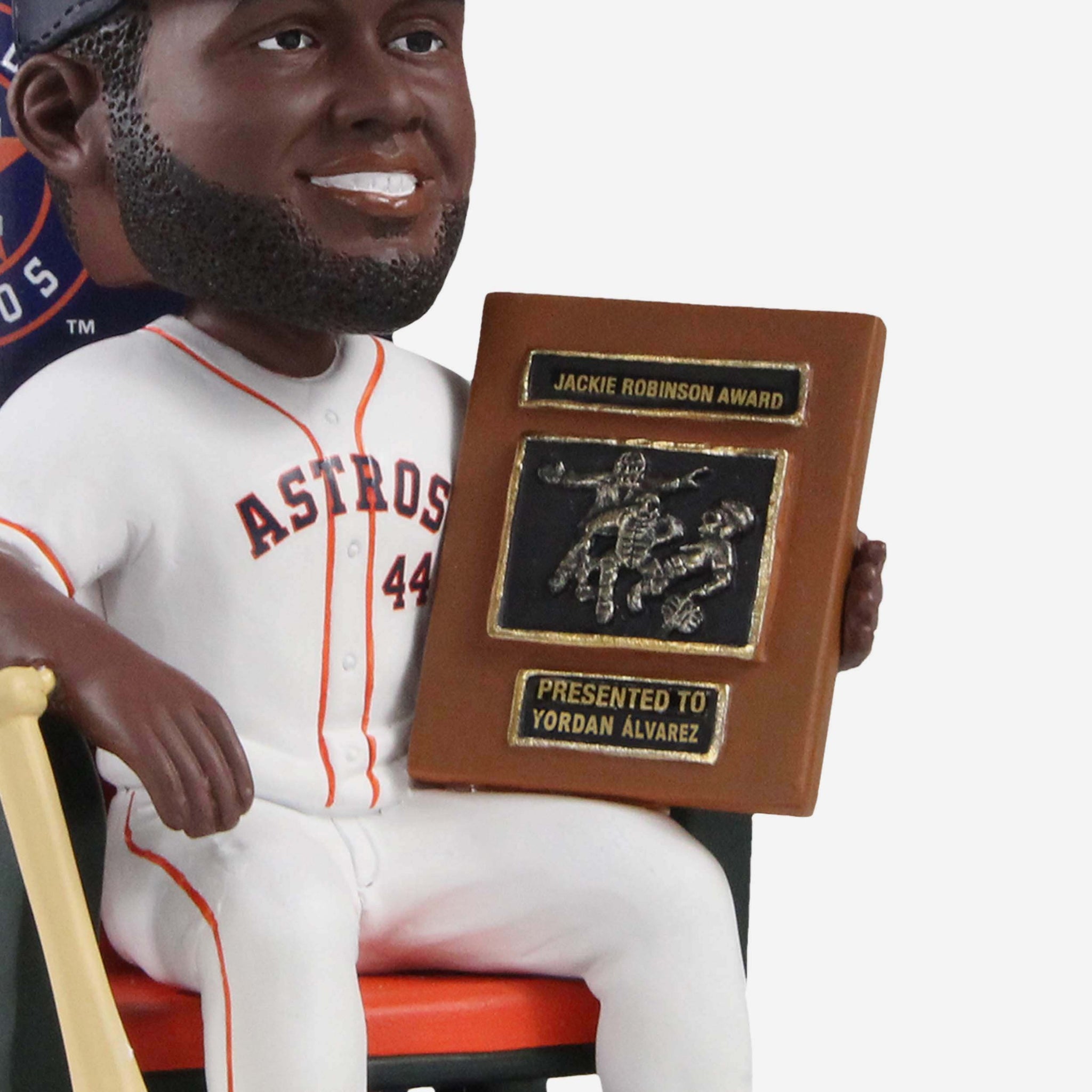 - Portrays Alvarez sitting on a stadium chair holding Rookie of the Year trophy, because no celebration is complete without it